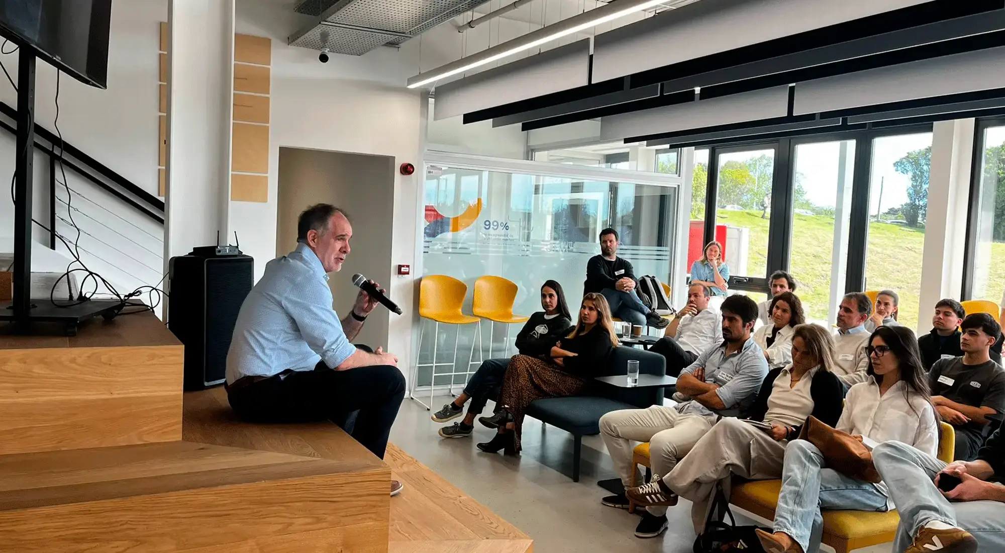 La actividad, coordinada por Pablo Pereira Balestra y Anna Chiara Ortolani de UM, reunió a estudiantes y emprendedores en un formato descontracturado y participativo. En un ambiente de diálogo abierto, Federico Muttoni repasó los momentos clave de su recorrido personal y de Advice, destacando los aprendizajes, desafíos y convicciones que marcaron el camino de la empresa a lo largo de más de veinte años.