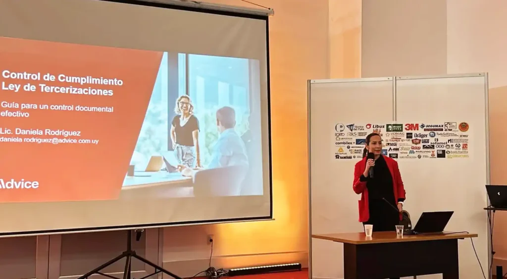 Durante este encuentro, Daniela Rodríguez, Responsable de Nómina en Advice, expuso una “Guía para un Control Documental Efectivo”, donde presentó los principales desafíos que plantea la Ley de Tercerizaciones y cómo las empresas pueden gestionar de forma efectiva la documentación requerida.